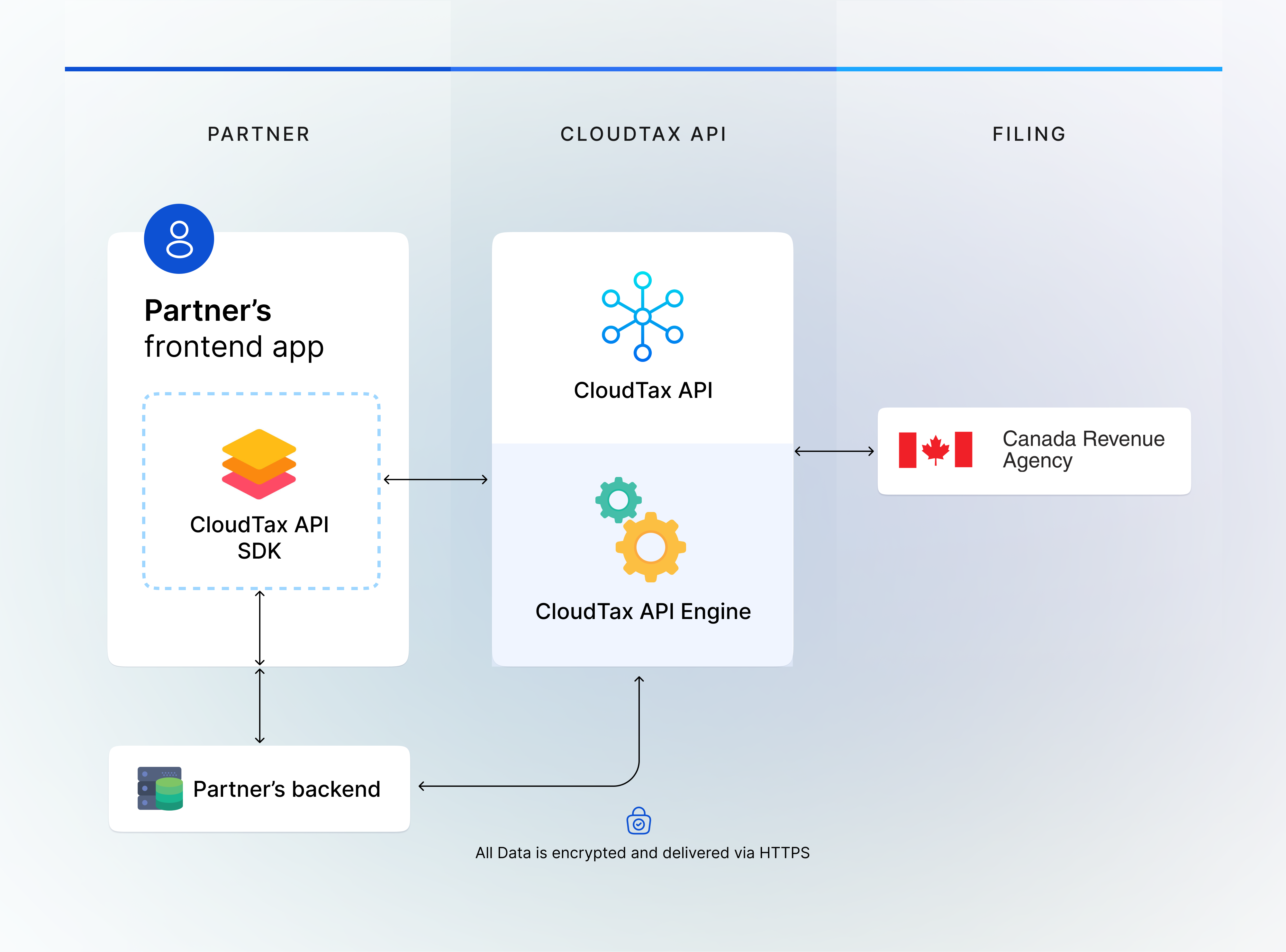 Through the CloudTax API, you can embed our tax filing experience directly into your platform. Our API allows for pre-filling user data, handling complex tax calculations, and securely submitting returns to the CRA. Additionally, CloudTax offers a unique advantage: with user consent, partners can access and utilize tax data for deeper integration.